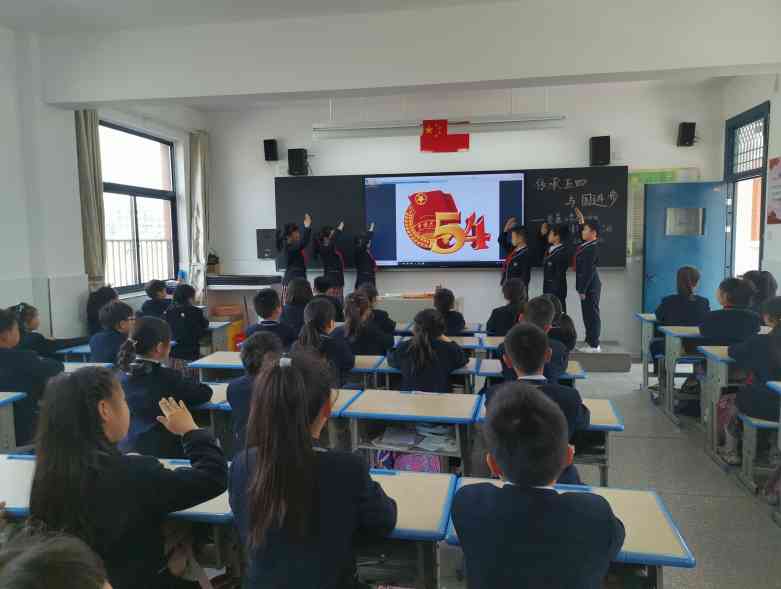 ~ 2021年 4月30日,“五四青年节”到来的前一周,紫薇小学三(1)中队开展了“传承五四  与国进步”的主题教育活动。