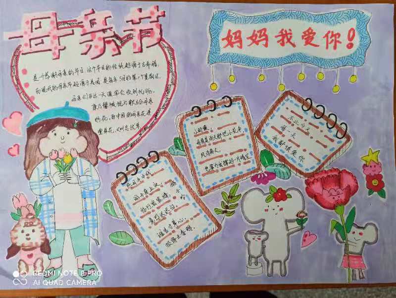 活动开始,辅导员召开了“感恩母亲”主题队会,让队员更深入地了解母亲的辛劳,懂得爱的责任,学会爱的奉献。辅导员还组织队员制作“感恩母亲贺卡”,创办“感恩母亲手抄报”,队员们满怀着对母亲的深情制作了贺卡和手抄报,表达了对母亲的感激、热爱之情。陈予甜和张瑞杰两位队员还通过“红领巾广播站”向全校师生歌颂了母爱的伟大和无私,并通过歌曲《妈妈格桑拉》祝福全天下的母亲健康平安。最后,辅导员还向全体队员发出倡议:在“母亲节”当天,用最亲切最真诚的话向母亲表示感谢及祝福;帮母亲做家务;献上一份礼物,给母亲一个意想不到的“惊喜”;去拥抱一下自己的母亲……