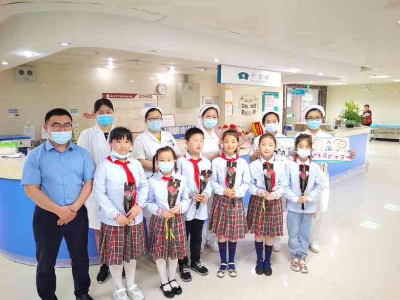 ~ 在这个特别的节日里,紫薇小学小朋友们为弘扬南丁格尔精神,表达对白衣天使的敬仰之情,他们带来鲜花和节日祝福来到了滁州市中西医住院部9楼心血管一科,看望自己心目中的白衣天使。