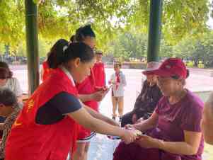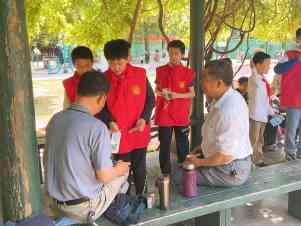 ~ “爷爷您好,您知道‘全国城市节约用水宣传周’吗?今年的5月9日至15日是第十三届‘全国城市节约用水宣传周’”5月10日,三里亭的公园里迎来了很多“红领巾”志愿者,他们手里拿着自制的节水小书签,赠送给社区居民,宣传节水。
