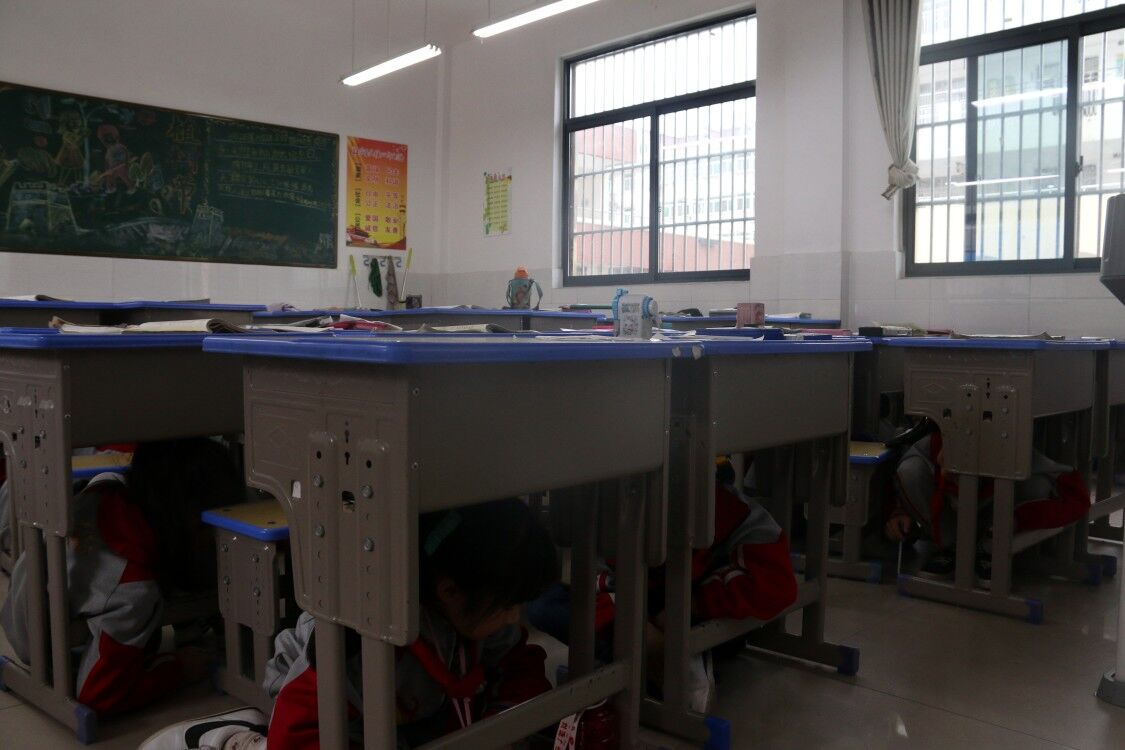 ~ 8时10分是课间休息时间,正在玩耍的学生们听到刺耳的警报声并没有慌乱。在班级和走廊的学生立即躲在课桌下、墙角避险,在操场上的学生立即到达空旷区域,随后第二声警报声响起,师生们根据《建设小学紧急疏散逃生自救演练活动方案》要求,沿着预定路线,安全、有序、快速地撤离教室,到达安全区域。在撤离的各楼层及关键地点,都有老师维持秩序,协调指挥,确保疏散线路的畅通。经过二分五十七秒,全校师生安全疏散到指定位置,安全有序地完成本次紧急疏散演练任务。