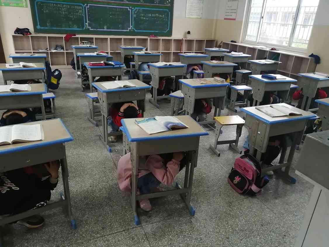 ~ 首先,各班教师通过观看视频、分发防震减灾宣传单、主题黑板报等形式向学生进行了安全知识普及,让他们进一步了解地震常识和避震方法。12日上午8:20,警铃突然响起,全体教师迅速组织学生躲到教室最安全的地方如桌椅下、墙角处。随着疏散囗令的下达,同学们双手抱头,在老师的组织下有条不紊地离教室,不慌张、不抢道,有序地按指定路线,快速撤离教学楼,顺利到达室外安全地带。