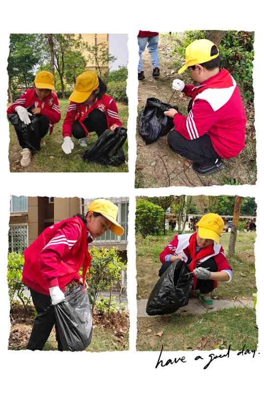 ~ 到达目的地后,学生们在社区人员的带领下,戴起手套,拿着垃圾袋开始行动起来。小区的草坪里处处可见烟头和白色垃圾,学生们一边捡一边感叹:“到处都有垃圾,小区的环境卫生何时才能得到改善呢?”