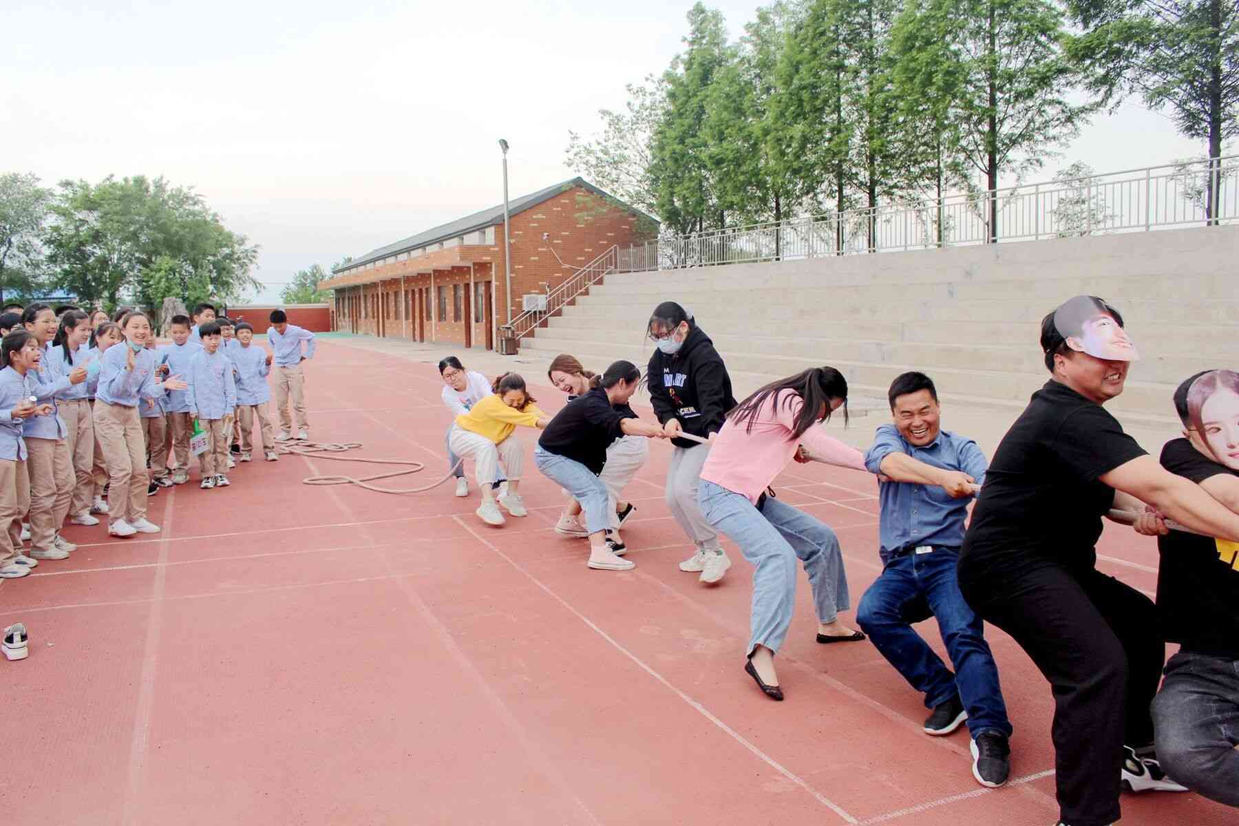 ~ 5月17日,定远县育才学校办了师生趣味运动会,该校800余名师生参加本次活动。本次运动会包含跳绳、拍球、背部夹球接力、拔河四项比赛活动。