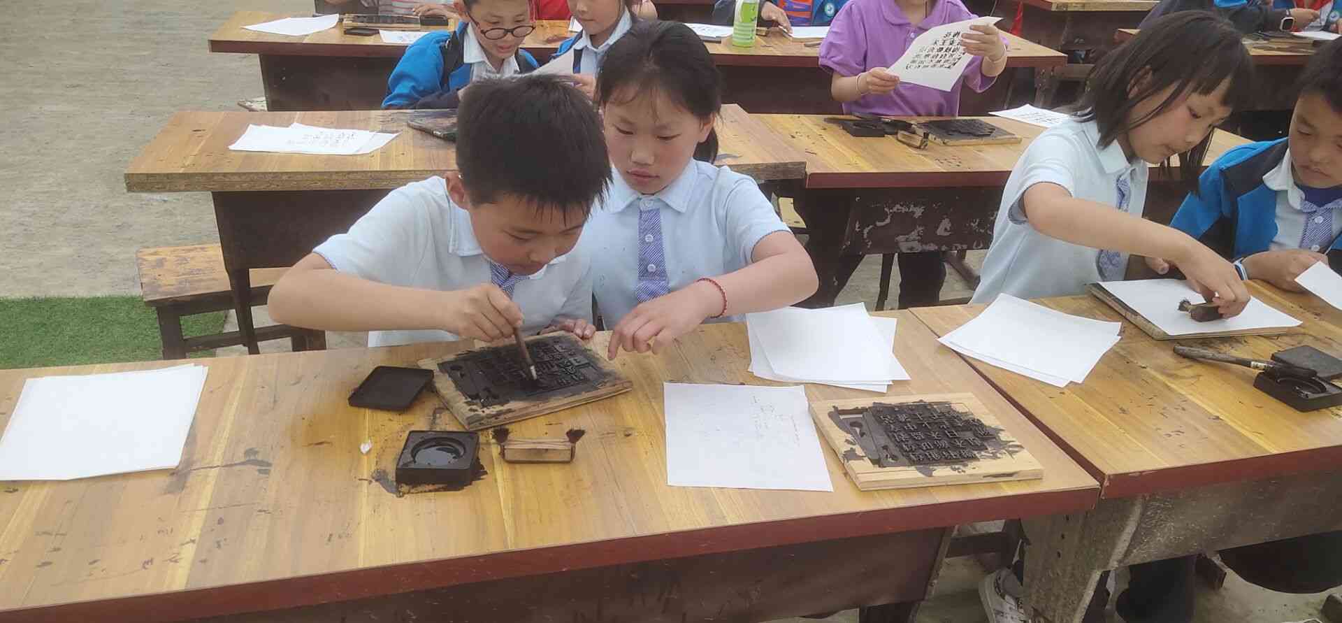 ~ 活动伊始,教官简短的介绍了基地的有关情况及研学活动的目的和相关活动流程。同学们在教官的口令下,整齐的排好队,举行了庄严的升旗仪式。随后研学之旅正式开始,活动中参观了活字印刷和造纸术,并亲自参与操作活字印刷的全过程,参与的学生看着自己印刷的作品,心里无比的激动,体会到了古人的无穷智慧和劳动人民的伟大。实践活动还有用鼓击球、有采桑葚、参观玫瑰花种植园等,同学们个个认真参与,仔细实践,劳动中获得了知识,体验了快乐。午饭后,同学们进行了短暂的休息,又参与射箭活动,参与了重走长征路活动,活动中同学们体会到了红军长征途中经历各种困难和险阻,体验到了红军长征精神的伟大。一天的研学之旅很快就要结束了,同学们玩得意犹未尽,与基地难舍难分。