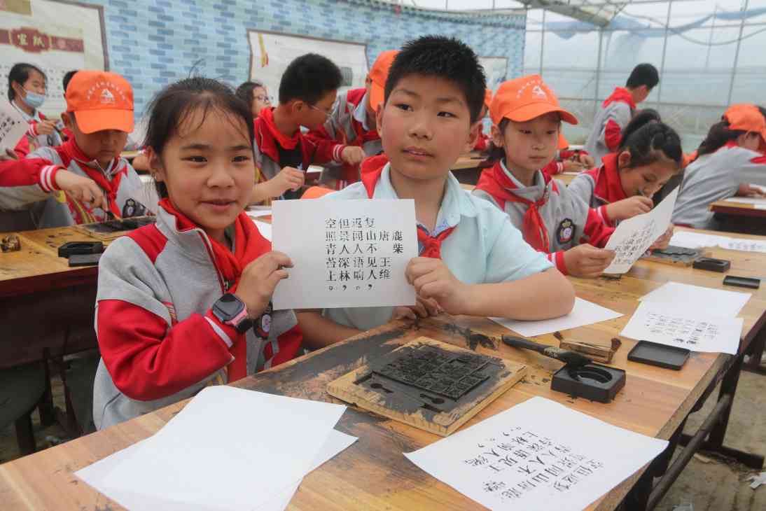 ~ 在研学基地,花园湖小学学生与营地教官举行了庄严的开营仪式,同学们在教官的口令下,整齐地排好队。实践活动丰富多彩:在“活字印刷”体验馆,孩子们亲自参与操作活字印刷的全过程,看着自己印刷的作品,无比激动,体会到了古人的无穷智慧和劳动人民的伟大。“用鼓击球”,培养的是团结合作能力,既趣味十足,又增强体质。“采桑葚、领养小蚕”,了解了中国的养蚕历史,感受蚕文化的独特魅力。