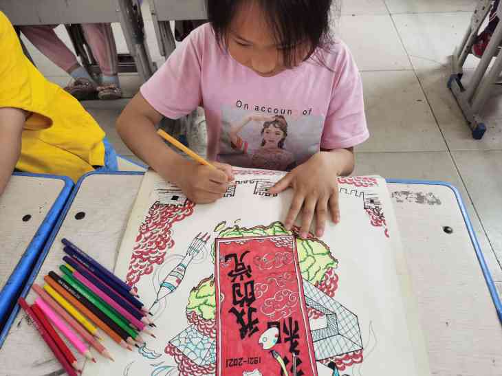 为弘扬社会主义核心价值观,增进少年儿童爱党、爱祖国、爱社会的情感,定远县早庙学校大队部开展了“童心向党,追梦新时代”手抄报比赛。手抄报活动在全校铺开,孩子们的手抄报在班级教室的文化墙展示。手抄报内容丰富:诗歌、故事、歌曲介绍等等;画面极具美感:党旗、队旗、天安门、长城、彩虹、可爱的动物……孩子们用笔画把对党、对社会主义新生活的热爱和美好向往通过图画和文字表达出来,用自己独特的方式在庆祝党的生日。