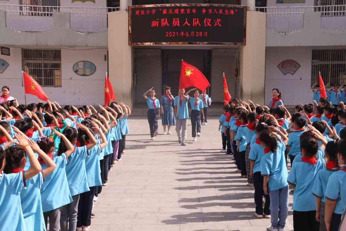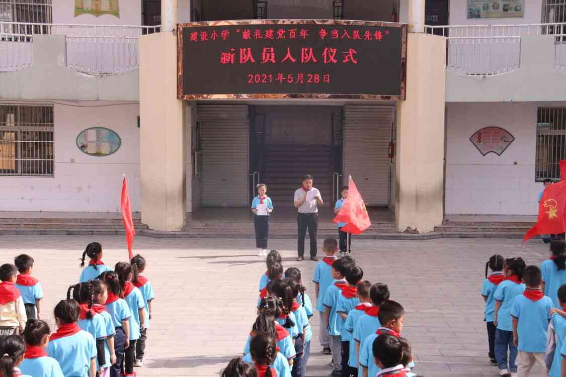 ~ “准备着,为共产主义事业而奋斗!时刻准备着!”5月28日,建设小学举行“献礼建党百年 争当入队先锋”少先队新队员入队仪式。391名学生戴上了鲜艳的红领巾,成为光荣的少先队员。