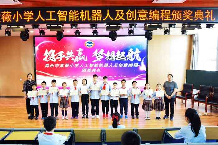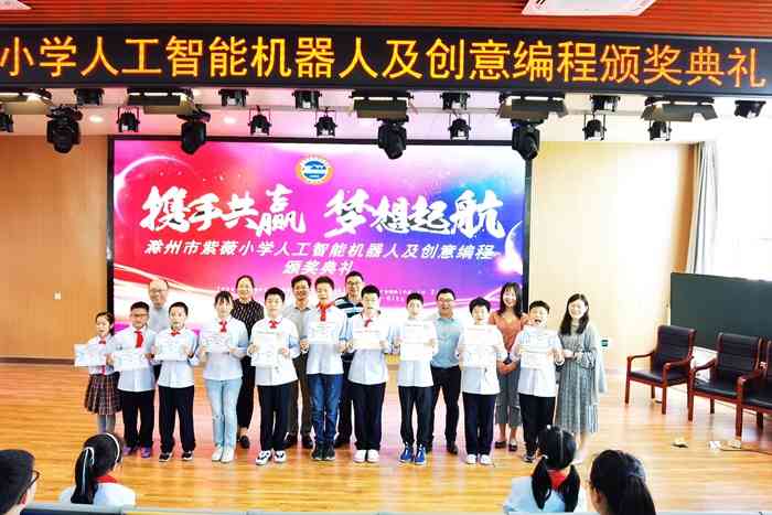 滁州市创意编程获奖孩子们和颁奖领导合影。