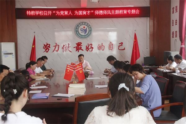 ~ 6月1日,定远县特教学校在会议室召开“为党育人 为国育才”师德师风主题教育专题会,全体教师参加会议,校长谢庆贵主持会议。