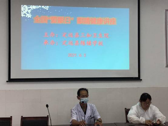~ 为提高同学们对眼的健康保健意识,结合学校常见病近视、沙眼的具体情况,认真做好2021年6月6日第26个全国“爱眼日”活动。全方位科普近视、眼底病等眼病防治(控)知识,提高眼健康知晓度。定远县三和卫生院公共卫生管理科在我校开展开展“全国爱眼日”主题教育活动。