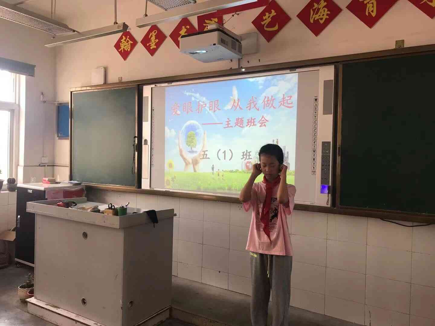 主题队会上,各班主任通过观看视频、教育学生保证充足的眨眼,适当进行室外活动,参加有益的体育锻炼,注意眼睛的营养供给等,来保护自己的眼睛。各班主任还纠正了做眼睛保健操中不规范的动作,帮助学生科学用眼。