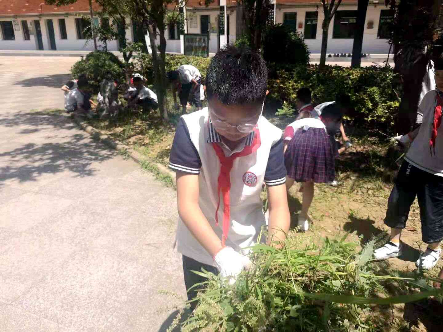 ~ 活动中,各班级利用主题班会,向同学们普及环保知识,解读环境保护的重要意义,引导同学们践行绿色生活理念。主题班会活动结束后,育才学校的同学在校园开展环境卫生整治活动。主要针对卫生死角、绿化带杂草等。虽然天气炎热,但志愿者们积极发挥奉献精神,不怕脏、不怕累,个个奋力争先,通过大家的共同努力,校园环境面貌焕然一新。(图文 朱家茂 审核 倪有华)