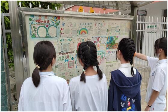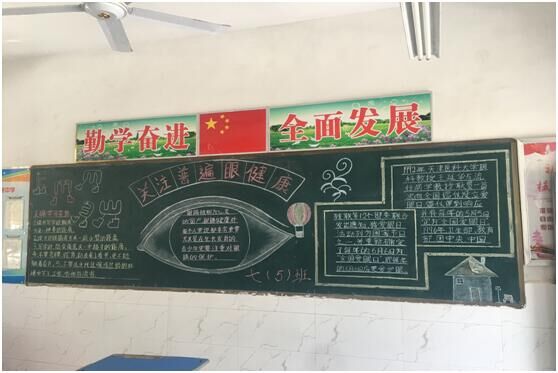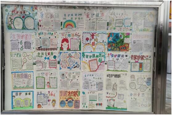 学校通过开展以“爱眼日”为主题的国旗下讲话、主题班会,黑板报、手抄报评选等加强师生科学用眼知识宣传,培养师生科学用眼习惯。班会课上,各班主任利用PPT、短视频等向学生讲解了“爱眼日”的由来,邀请班级近视的学生谈谈近视给自己的学习和生活带来的不便,使学生深刻体会到“保护眼睛”的重要性,班级同学还自编“爱眼日”顺口溜:科学用眼,适时锻炼;睡眠充足,定点休息;多吃维A,明亮眼睛,让大家记得快,记得牢。