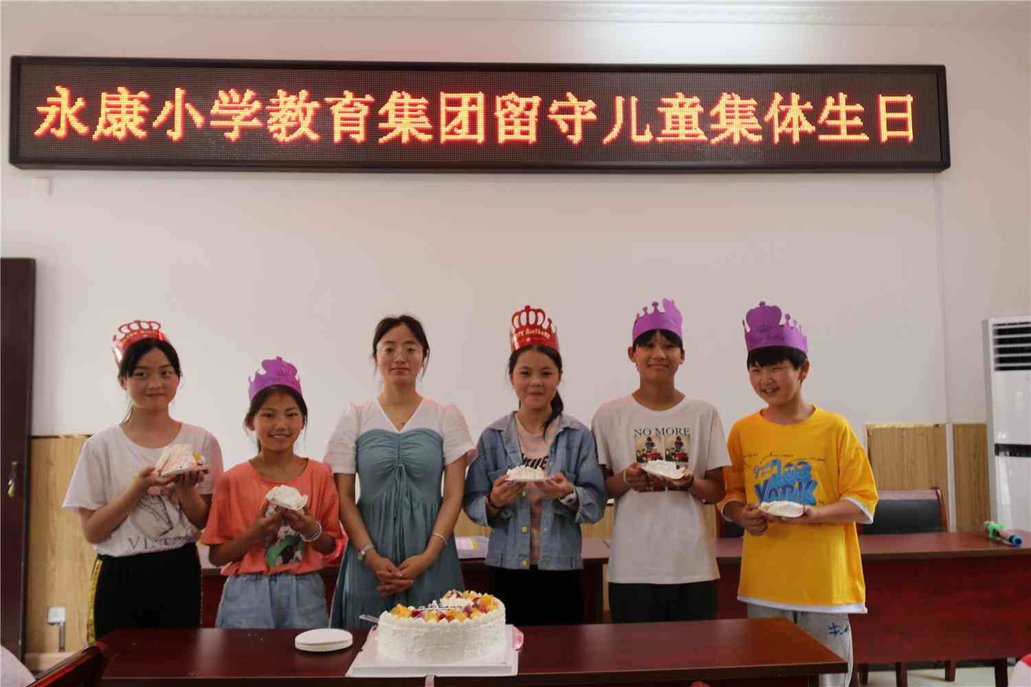 永康小学教育集团明德校区为90名留守儿童举办了集体生日会,同学们在分享完生日愿望之后,老师和学生们一起唱生日歌,一起吹灭生日蜡烛,学生们兴高采烈、欢欣鼓舞。