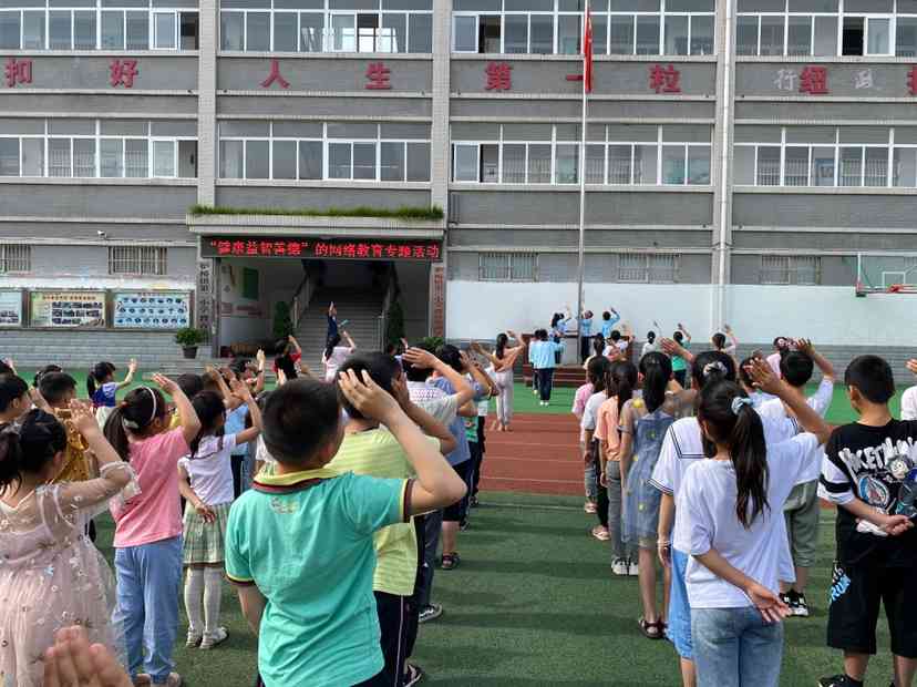 ~ 6月7日早晨,定远县炉桥二小在操场上举行了以“健康益智善德”网络教育活动为主题的升旗仪式。