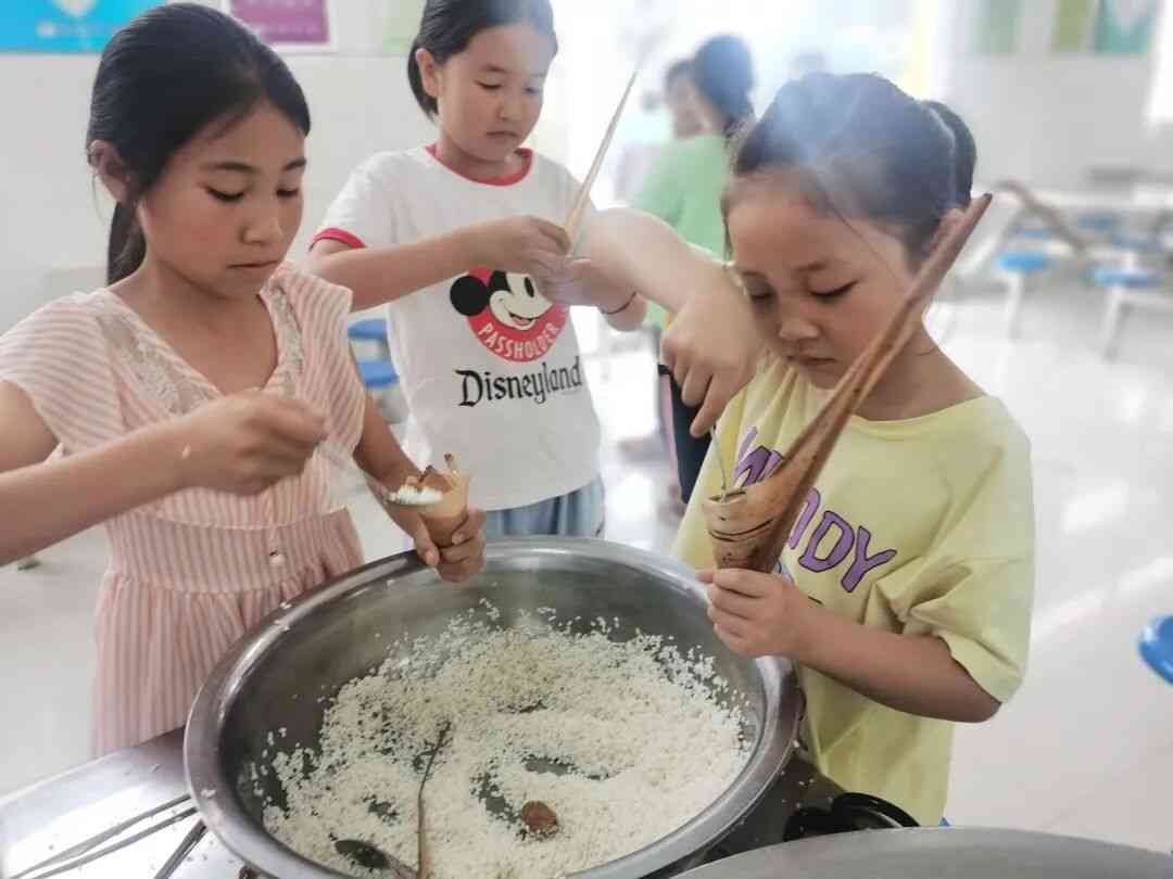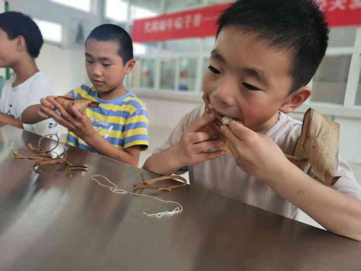 活动现场,来自各班的留守儿童与爱心爸爸妈妈们共同包粽子,话端午,大家沉浸于浓浓的节日气氛中。经过大家的辛勤劳动,一锅“形态各异”的粽子出锅了,空气中散发着清爽的气息,孩子们迫不及待地去认领自己包的粽子,向大家“炫耀”着自己的劳动成果。