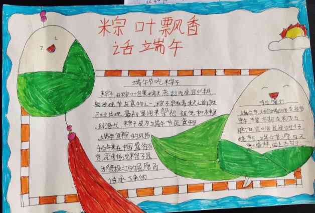 各班级在班主任的组织下开展了一次以端午节为主题的班队会。会上,班主任介绍了端午节的由来、有关传说、各地的风俗习惯,让同学们提前收集并现场吟诵有关端午节的诗词。会后,学校组织各班级制作以“粽叶飘香话端午”为主题的手抄报,让各班级评选并晒出优秀作品。此外,学校还动员全体学生在家开展一次“我与妈妈共同包粽子”的活动,让同学们在亲情互动中感受节日的魅力。(图文:赵悦 审核:罗培齐)