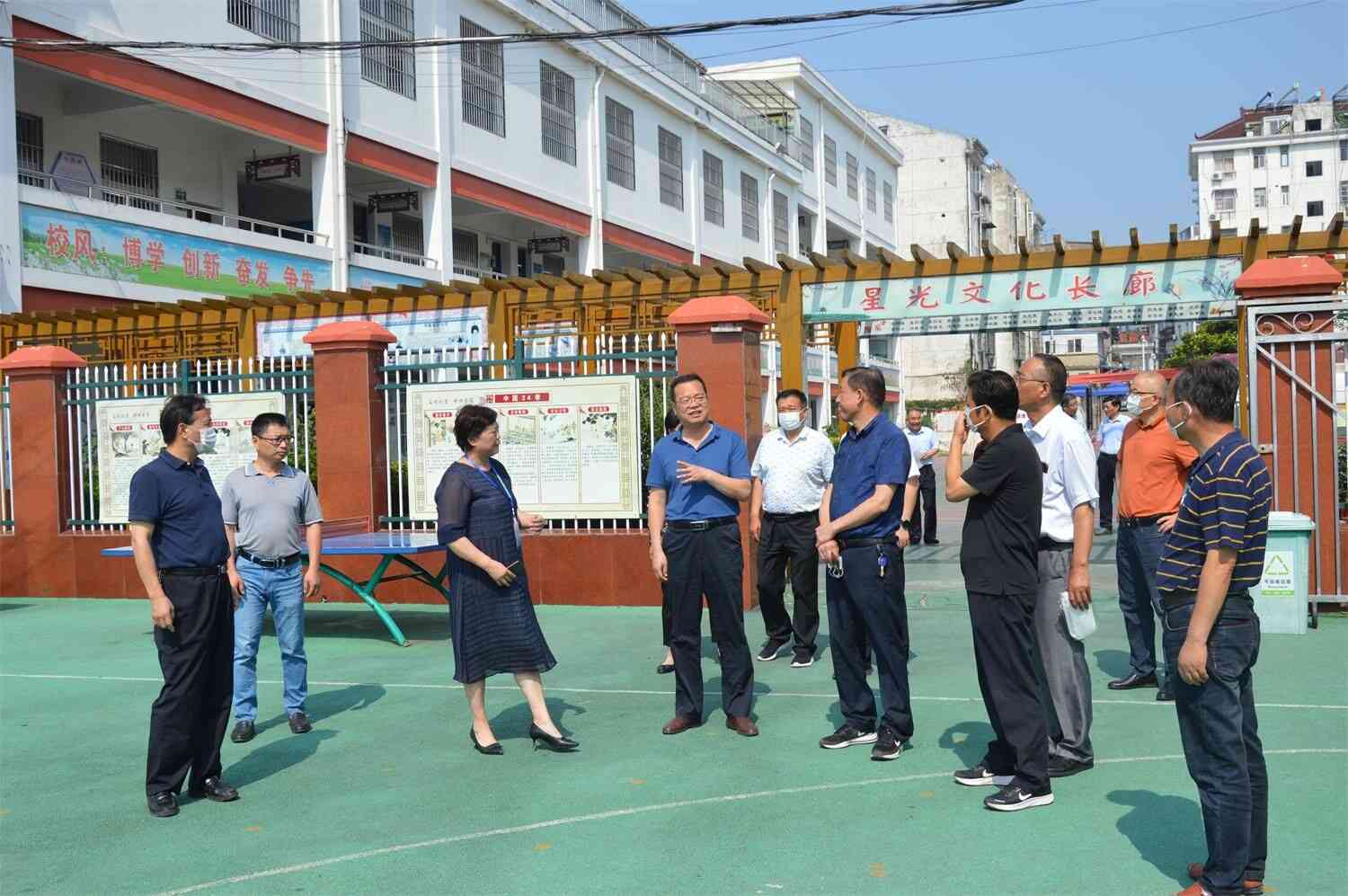调研活动中,陈国祥主任首先参观了学校的校园环境,查看了关于八五普法的宣传布置情况,了解了学校开展八五普法的具体活动。随后,陈国祥主任又询问了学校的办学情况。