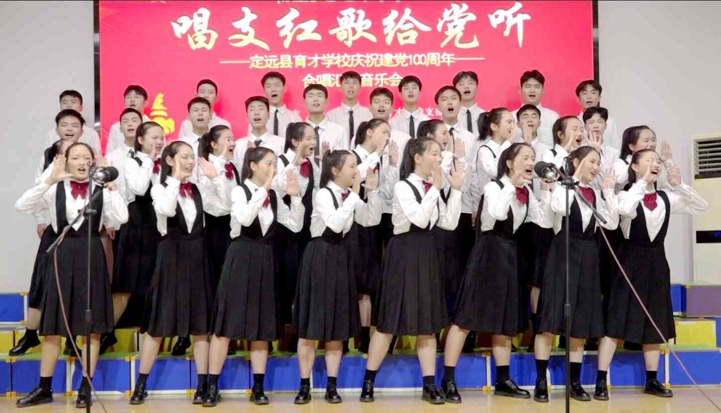 “起来!不愿做奴隶的人们!把我们的血肉筑成我们新的长城……”6月21日,伴随着催人奋进的《义勇军进行曲》,育才学校“唱支红歌给党听合唱汇报音乐会暨庆祝中国共产党成立100周年”大合唱正式拉开帷幕……
