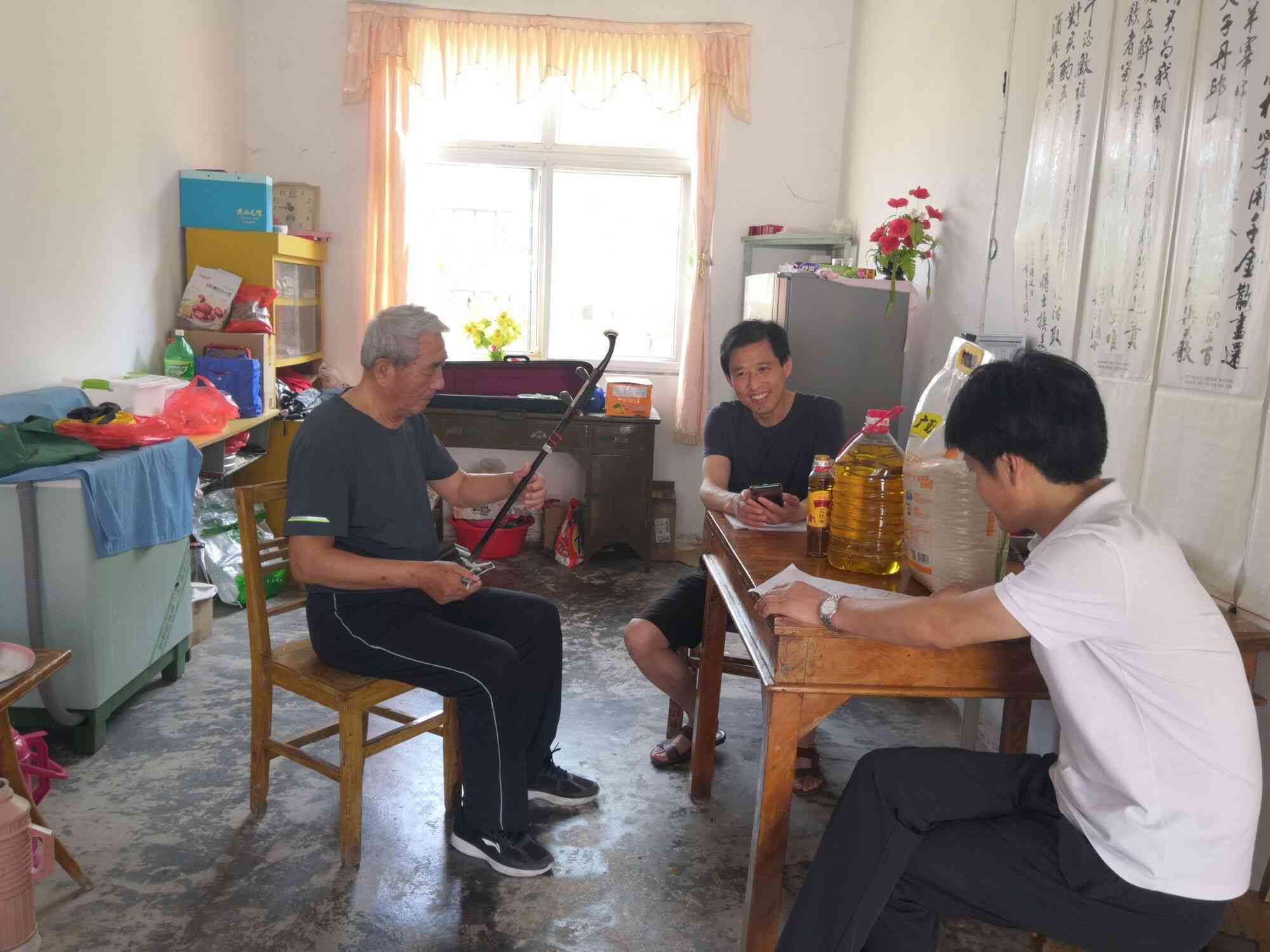 俞老师与到访的严廷成、王飞促膝而谈,言语中尽显对党的无限热爱和对新中国建设伟大成就的无比自豪,表达出一位老党员对中华民族伟大复兴的坚定信念,同时流露出愿为实现中国梦而发挥夕阳余热的党员情怀。(图文  盛少堂;审核  赵斌)