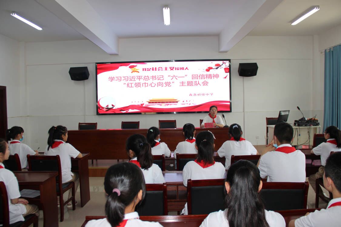 为深入学习贯彻“习近平总书记给江苏省淮安市新安小学少先队员重要回信精神”,把党史学习教育走深走实, 6月23日,定远县青洛初中各年级召开“从小学党史 永远跟党走”主题队会活动。