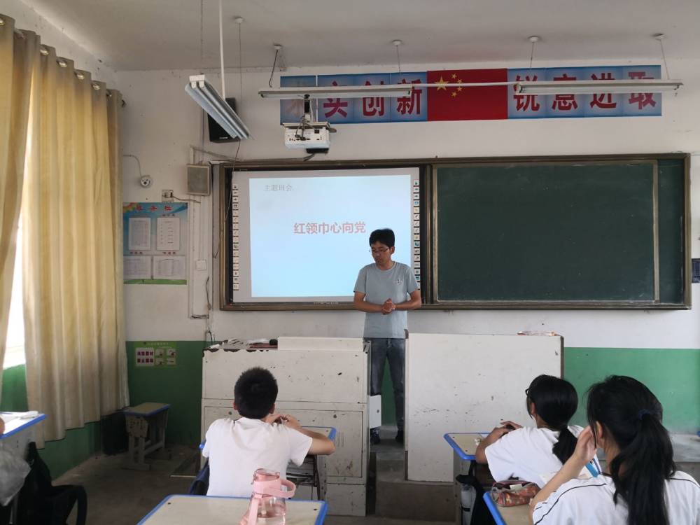 ~ 青少年是祖国的未来,培养他们热爱党、热爱祖国的美好情怀,这是教育者的责任。为勉励少先队员们学好党史,以英雄模范人物为榜样,从小坚定听党话、跟党走的决心,集中开展好总书记回信精神的学习宣传,持续深化“红领巾心向党”少先队党史学习教育,定远县藕塘中学于近日召开“红领巾心向党”主题班会,加强宣传。