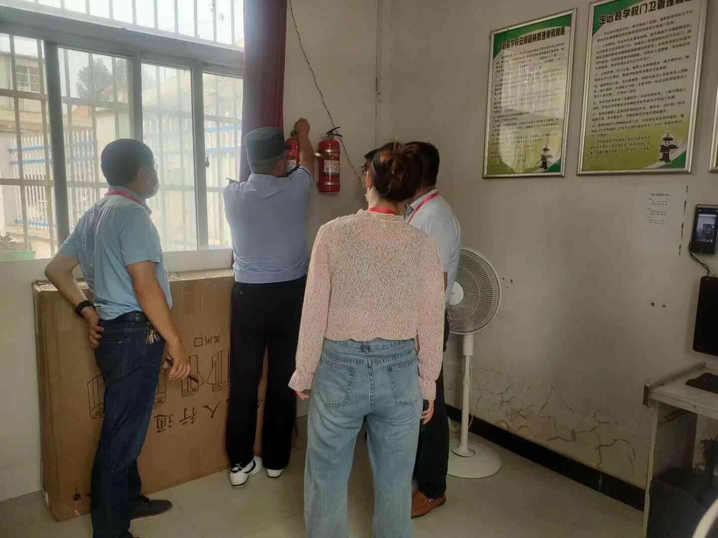 ~ 郑德平一行对能仁学校消防设施、图书室、学生食堂、校园周边小店等进行了仔细走访查看,并就存在的不足提出了整改意见。(供稿 王刚 审核 张中保)