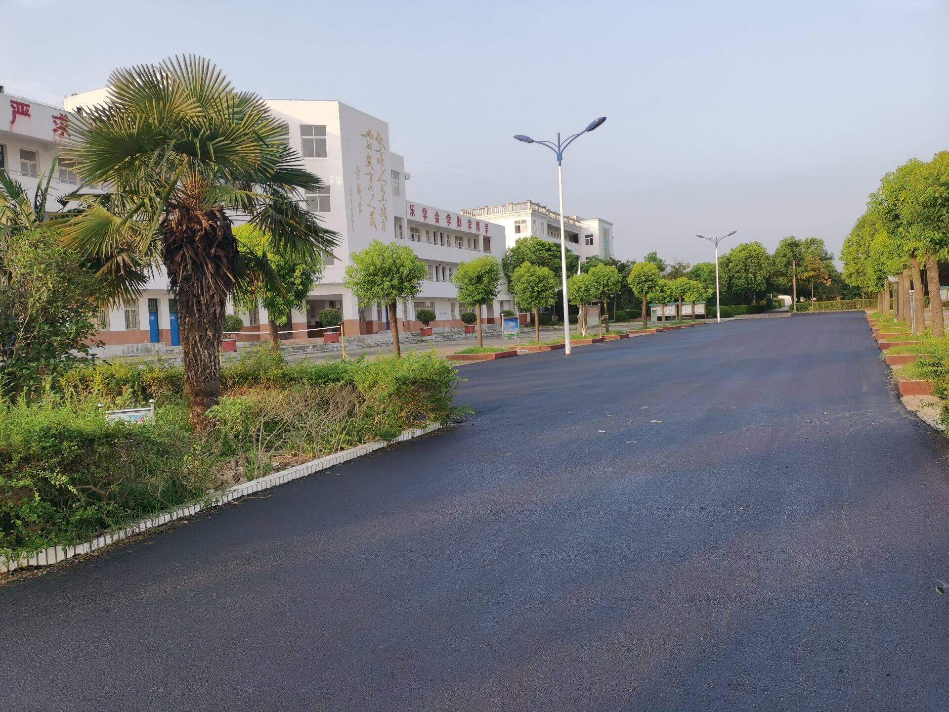 ~ 为美化校园环境,让路面变得整洁,近期,定远县藕塘中学利用暑假为主干路铺设沥青。天气炎热,但没有影响工程进度。铺了沥青后,校园面貌焕然一新。绿树,教学楼,柏油路,环境清新怡人。(图文:高令亚 审核:戴锦新)