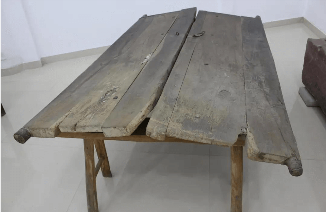 ~ 1938年秋,党中央决定成立以刘少奇为书记的中原局。1939年11月底,刘少奇同志化名胡服来到皖东藕塘地区,先后主持召开了三次中原局会议。第二次中原局会议就在刘少奇住的地方界牌集镇山黄村召开的。他常常工作到深夜,困了就把房东家的门板放下来,铺点稻草和衣而睡。两块门板放在一起,一高一低,怎么也放不平,铁质的门鼻更是高高翘起,即使铺上稻草,也能看见,这样的“床”睡觉怎么能舒服呢。房东心里过意不去,要把家里唯一的床让给他,刘少奇怎么也不肯接受,他说:“红军长征时,爬雪山,过草地,哪里有什么床呀,能活下来就算万幸,现在我有门板床睡,不知道有多幸福!”他拍了拍上面的稻草:“你看,还有厚厚床垫呢。”房东说不过他,便借口说他把门板放下来,没有门家里不安全,刘少奇爷爷听了哈哈一笑说:“放心,有我替你把门,鬼子不敢来。”多年以后,房东才知道,当年睡门板替他把门的首长竟然是刘少奇同志。