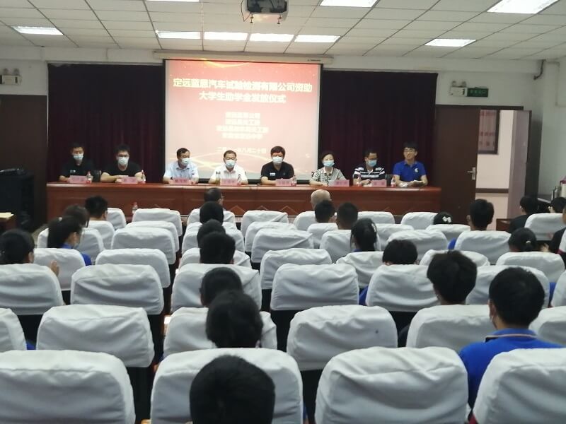 ~ 定远县关工委常务副主任王秀平、定远蓝恩汽车试验检测有限公司副总经理卞福健、定远中学校长戴茂俊出席仪式。40名家庭经济困难的受资助大学生及家长代表和受资助学校部分教师参加仪式。活动仪式由县教体局关工委主任唐仁凤主持。仪式上,蓝恩公司相关负责人向定远中学毕业的40名受助大学生发放助学金共计20万元,受助学生代表进行了发言。定远中学负责人在讲话中表达了对蓝恩公司、县关工委、县教体局表示感谢,并现场为蓝恩公司颁发爱心企业铜牌,他指出,知识改变命运,受助学生从开始的茫然无助到现在的自信乐观,顺利求学让他们离当初的梦想越来越近,希望所有受助学生可以再接再厉,取得更好的成果。