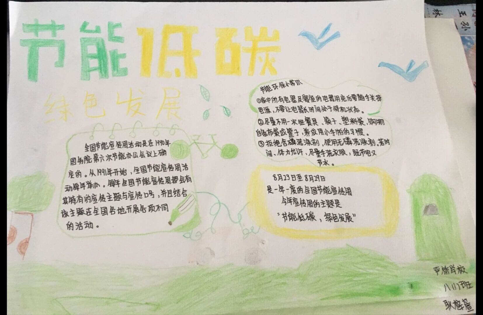 ~ 活动中,该校通过学生手抄报、学校公众号等线上线下多种方式展开宣传,并向师生发出倡议,号召师生树立低碳意识、养成低碳习惯、践行低碳生活的意识。提倡大家节约用电、节约用水、爱护环境。牢固树立“绿水青山就是金山银山”理念,大力倡导勤俭节约的好风尚,在学校营造节能降碳的浓厚氛围。