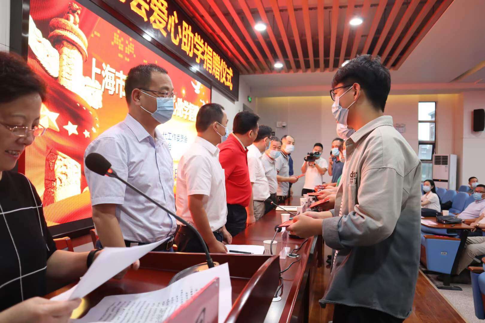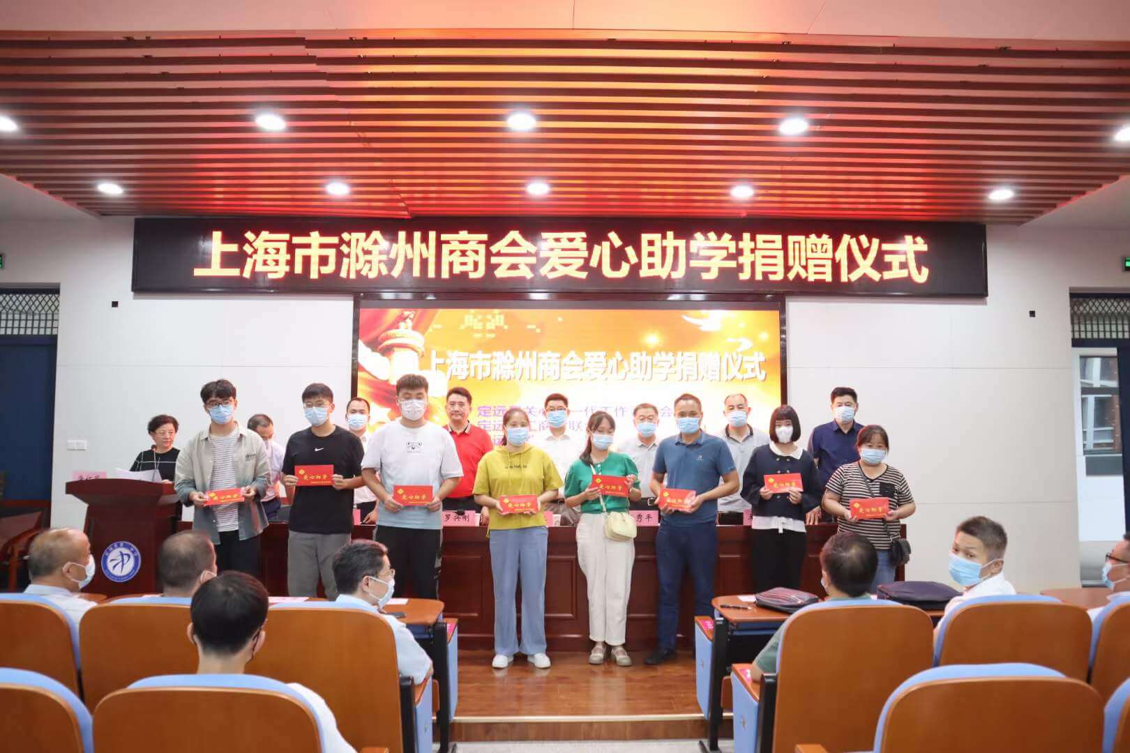 ~ 仪式上,上海市滁州商会向定远县30名品学兼优的贫困大学新生捐赠助学金共计6万元,受助学生代表进行了发言。现场向上海市滁州商会赠送爱心铜牌。