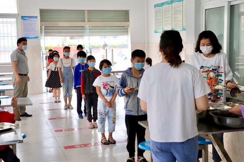 ~ 开学第一天,同学们正在按秩序依次排队盛饭,餐桌上餐具整齐排列,墙上“光盘行动 从我做起”等标语随处可见,时刻提醒着他们文明就餐。(供稿:伊露 审核:孙家升)