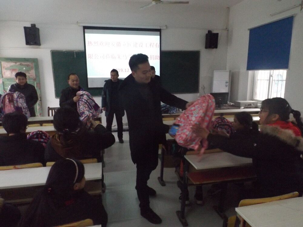 12月23日,安徽立匠建设工程有限公司来到朱马学校开展了爱心捐赠活动。学校的领导及教师对爱心企业的到来表示热烈的欢迎。 活动中,该企业负责人向孩子们赠送了书包、水笔、课外书…