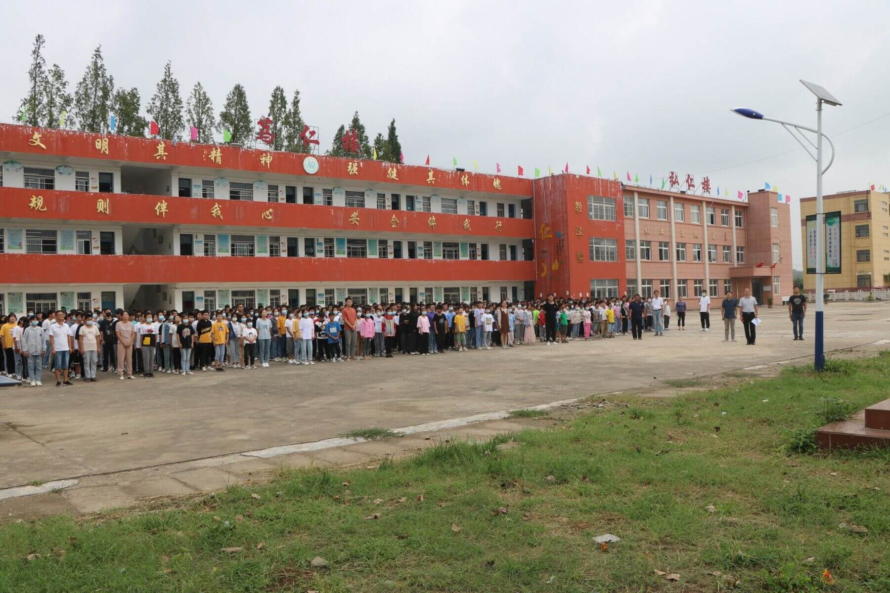 ~ 9月6日上午,定远县能仁学校在教学楼前广场举行秋季开学第一次升旗仪式暨开学典礼。六至九年级590余名师生参加此次升旗仪式。