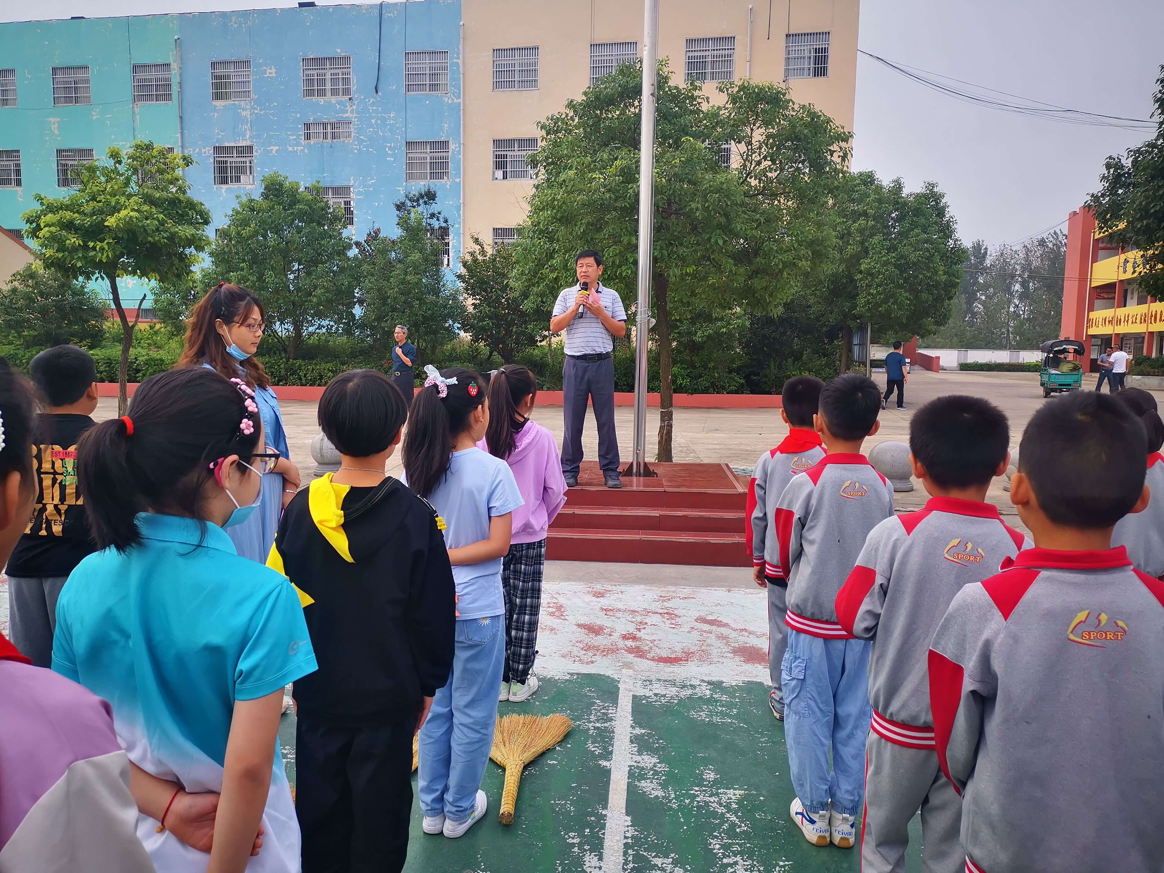 9月6日,定远县严桥学校举行新学年开学第一次升旗仪式,全体学生和班主任参加升旗仪式。