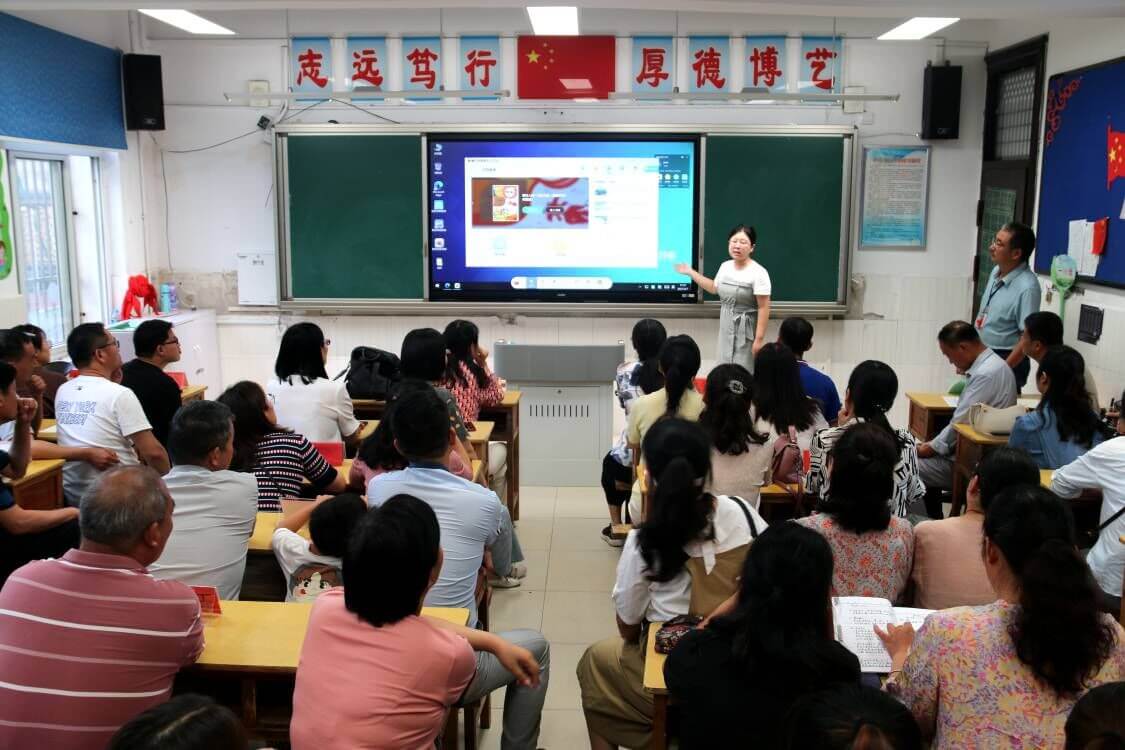 ~ 彭靓围绕“硬件施设使用及维护”“移动式备课”“省资源平台教师班级关系维护”“视频展台使用”等方面进行详细、全面的讲解,并现场解答教师们的疑问。据了解,今年暑期,县委、县政府共为该校更换班班通48台。“新班班通主机与显示集成与一体,led显示,亮度高,不伤眼。教学软件资源丰富交互性更好。”李开华老师深有感触地说。(冯再章报道  陈灯荣审核)