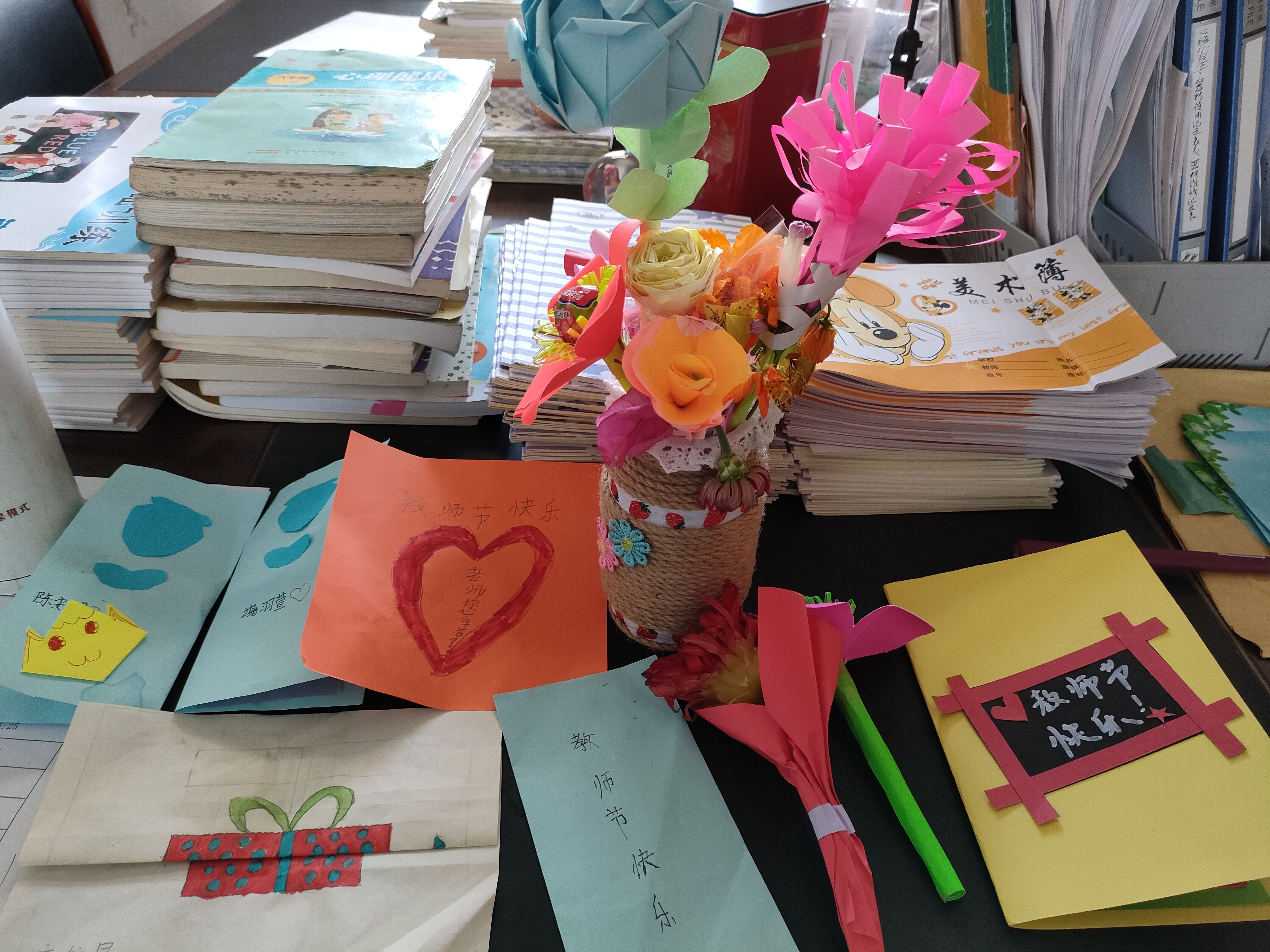 活动中,同学们表现积极,以各种形式为全体教师庆贺,一一送去节日的祝福。有的同学将自己亲手制作的节日卡片赠予老师,有的同学悄悄送出了一封感恩信,有的同学为老师献上亲手绘制的画……活动中,各班主任带领学生布置班级,集体出了一期以“庆祝教师节”为主题的黑板报,营造节日的氛围。各班还陆续开展以“浓浓尊师意,款款爱生情”为主题的班会活动,以实际行动向老师们表达由衷的敬意。