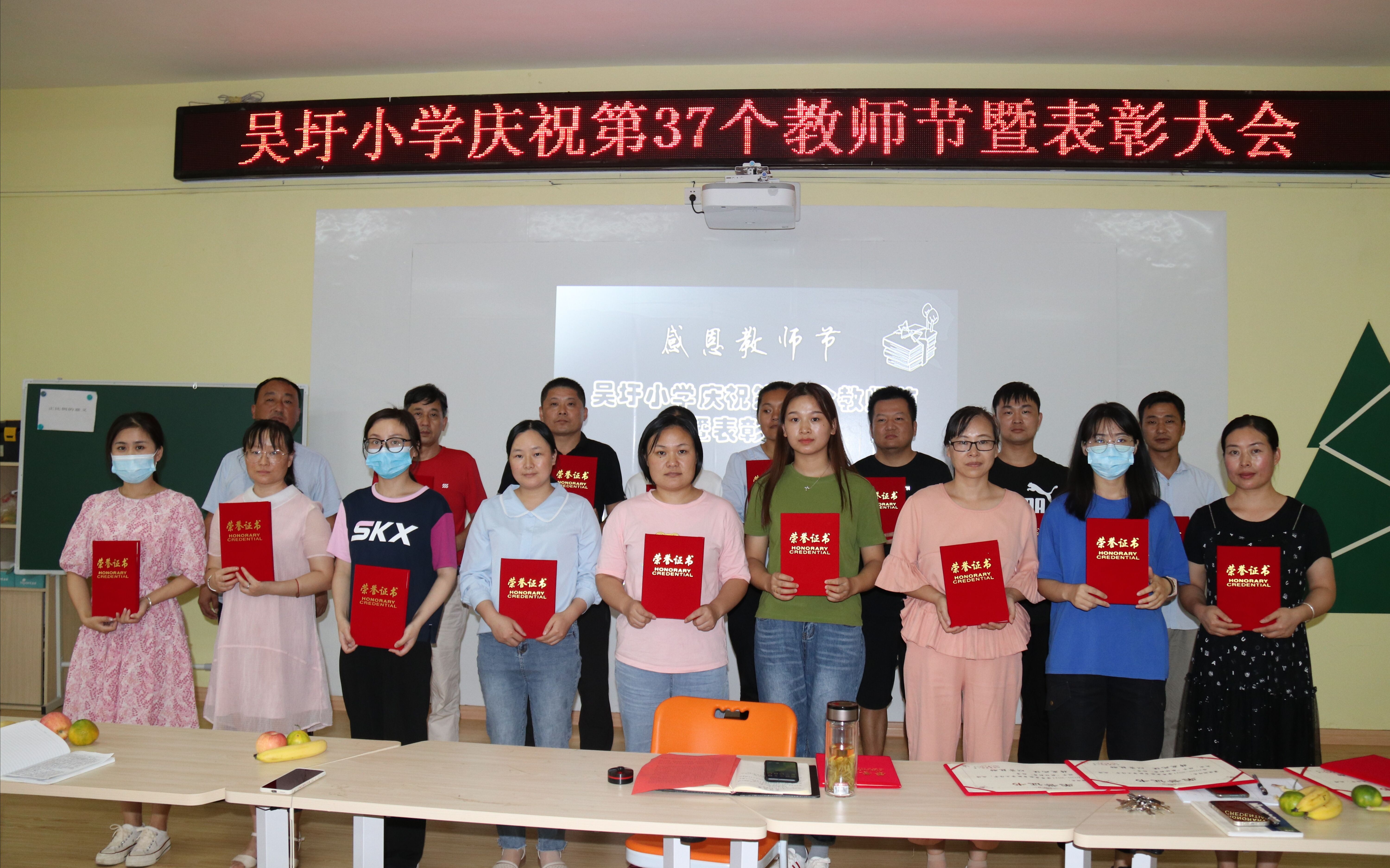 ~ 为庆祝第37个教师节,表彰先进,鼓舞全体教师进一步团结奋进、奋勇争先、再创佳绩,激发广大教师投身教育事业的热情, 9月10日上午,定远县吴圩小学召开庆祝第37个教师节表彰会。