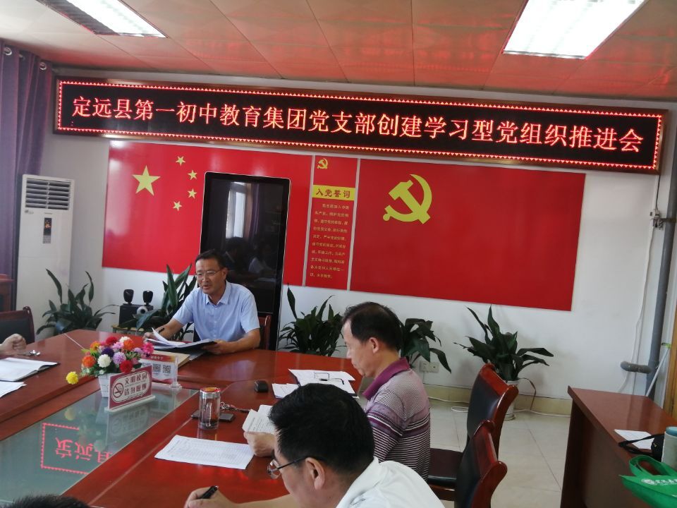 9月12日,定远县第一初中教育集团党支部在南环路校区党员活动室召开了创建学习型党组织工作推进会,集团党支部书记、校长张书清主持会议,支部全体支委和学习型党组织创建工作领导小组全体同志参加了会议。