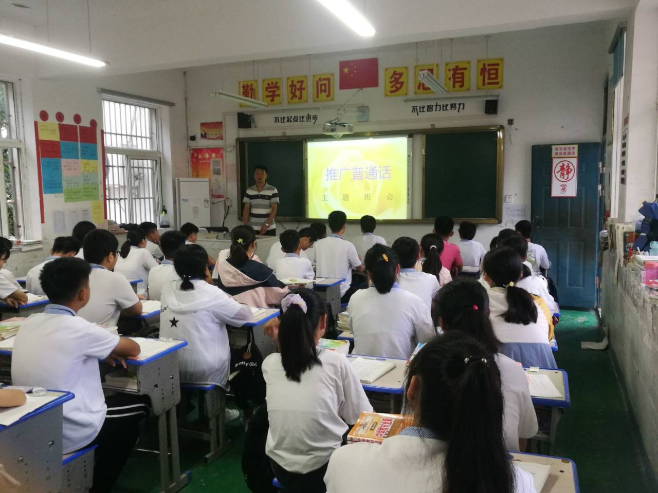 ~ 2021年9月10日,池河中学各班在寄宿生放半月假前夕利用班会了召开 “推广普通话,写好规范字”为主题的班会活动。主题班会上,各班主任首先阐述了说好普通话,写好规范字重要意义,接着各班级开展形式多样的班队活动,有的班级举行书法比赛,以促进同学们对祖国语言文字的认知;有的班级举行爱国主义诗歌诵读,感受语言的魅力;有的班级举行了方言与普通话的比较,体会说好普通话的重要性……,形式多样的班会让同学们沉浸在语言魅力带来的乐趣之中。