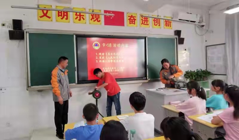 ~ 活动中,县人防办4名工作人员走进课堂,与师生互动,发放《人民防空法及人防科普知识宣传册》、《中学生防空防灾知识读本》等宣传资料,视频播放人防“鸣、走、藏、消”和《居安思危、勿忘国耻》宣传片,并运用多媒体PPT现场为学生讲解人防警报器、人防应急包使用和全县45处人防工程建设等相关知识。提前宣传告知“9.18”全县人民防空警报试鸣日活动注意事项,让学生参与体验人防手摇警报器。