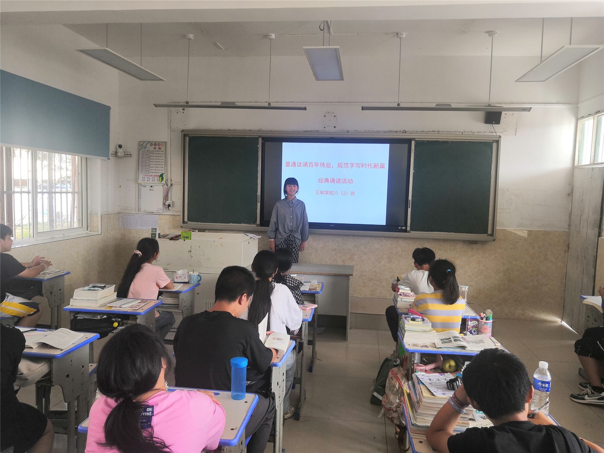9月12日至18日是第24届全国推广普通话宣传周,宣传主题是“普通话诵百年伟业,规范字写时代新篇”。9月13日以来,定远县三和学校通过专题会议、国旗下讲话、黑板报、主题班会、经典诵读等形式,开展丰富多彩的普通话推广活动,在全校范围内掀起了“讲普通话、写规范字”的热潮。(图文 盛少堂;审核 蒋安奎)