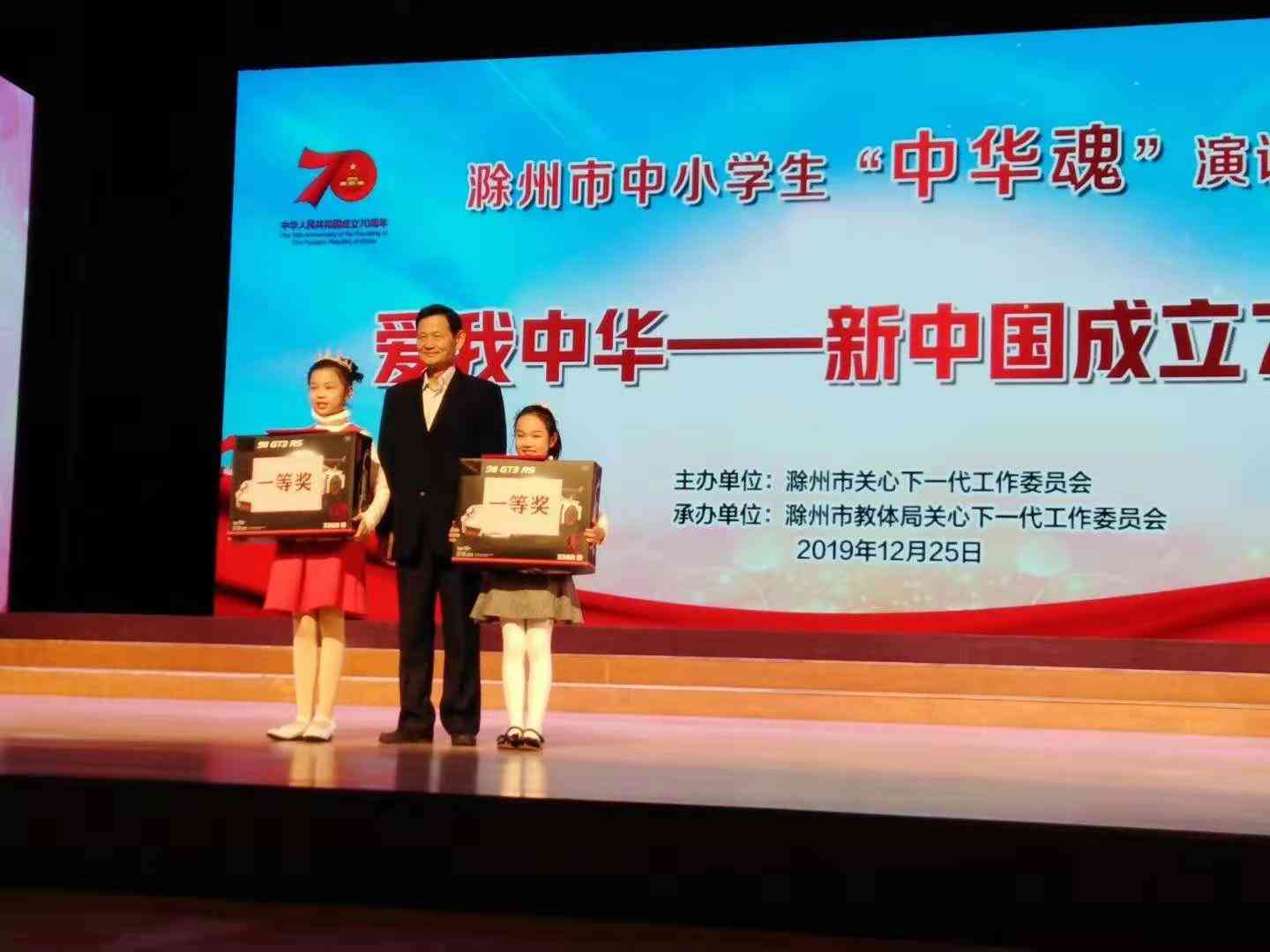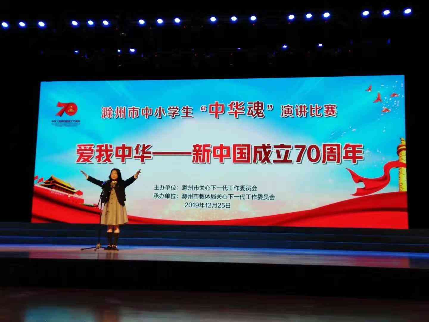 12月25日上午,滁州市中小学生“中华魂”演讲比赛在滁州大剧院隆重举行,定远县中、小学各1名选手参赛,分获中学组第1名、小学组第2名。这次比赛,是近几届比赛中,定远县取得最好成绩的一次。(梁斌、黄振群)