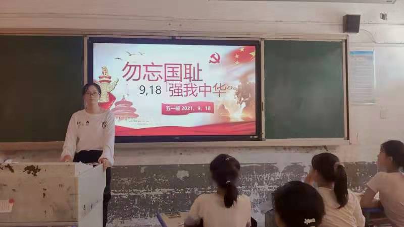 活动中,各班班主任通过课件、视频等方式带领学生们重温了“九一八”事变的历史,以此警示学生们铭记历史、勿忘国耻。各班班主任教育学生要珍惜现在来之不易的幸福生活,并激励学生努力学习,发奋图强,为实现中华民族伟大复兴的中国梦而努力奋斗。