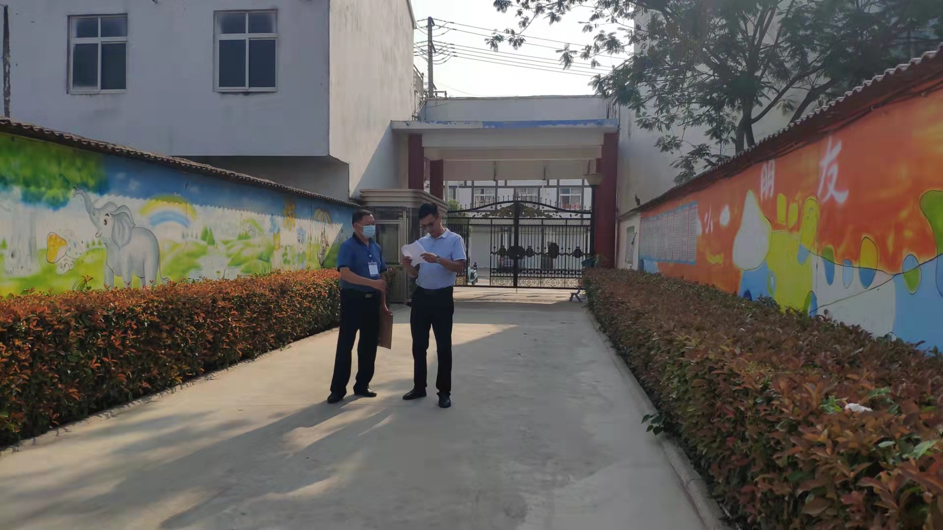 9月18日,定远县督学黄振群深入大桥镇振华小学和苗苗幼儿园督导“五项管理”等工作,校长孟竹东陪同。