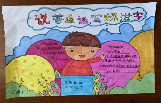 学校充分发挥主阵地作用,深入开展推普宣传活动,利用主题班会、黑板报、宣传栏、校园广播、手抄报、经典诵读等形式向全校师生进行“写规范字,说普通话”的倡议,全面启动推普活动,增强师生的语言规范意识,提高师生语言文字应用水平。在全校范围内营造了“人人讲普通话、人人写规范字”的良好氛围,对于语言文字规范化工作的长期开展具有十分重要的作用。(图:房莹莹 文:邵锋 审核:李骥)