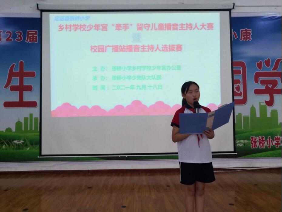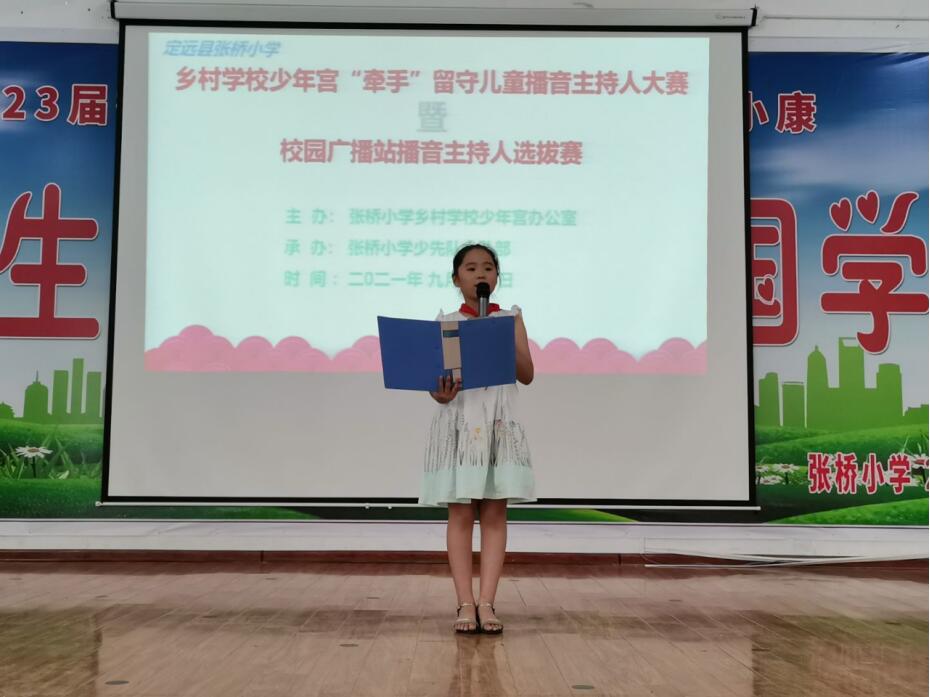 走上舞台,你就是主角,所有的聚光灯与摄影机是你忠实的粉丝和伙伴。9月18日,为体现校方对留守儿童的关爱与呵护,在中秋节即将到来之际,定远县张桥小学乡村学校少年宫“牵手”留守儿童播音主持人大赛暨校园广播站播音主持人选拔赛,正在少年宫多功能报告厅如火如荼地开展。
