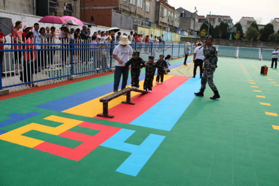 上课现场,教官教小朋友们认识国旗并且宣誓成为一名合格的小小兵。 接下来教官教孩子们匍匐前行10米,再走平衡木,增强了孩子们动手动脑的能力和身体平衡协调能力。最后,教官教小小兵们射击,培养学生的爱国主义精神,增强小朋友的国防意识。